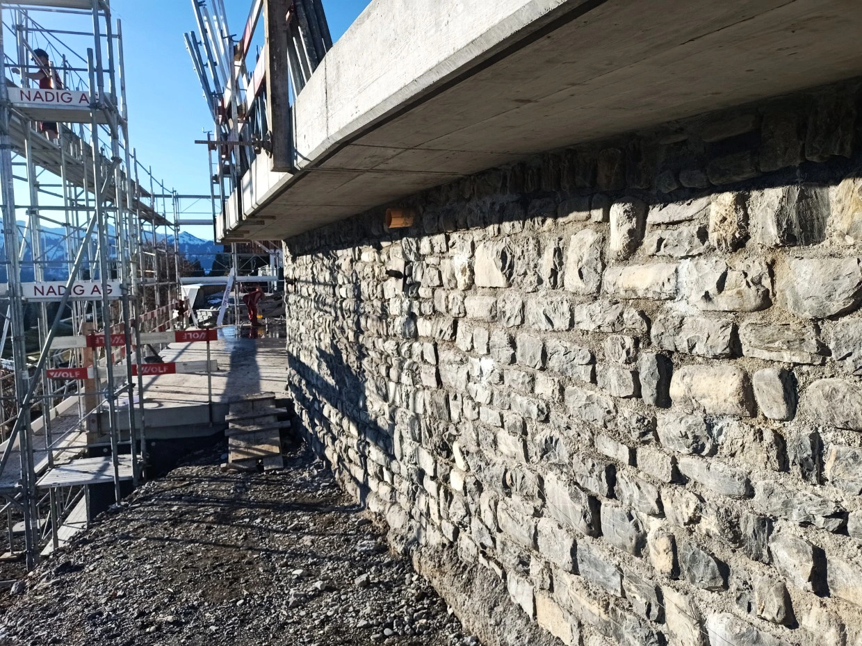 Beim Neubau eines Einfamilienhauses in Pany wurden wir mit der Bemessung und Projektierung der Fundation und des Massivbauanteils betraut. Ebenfalls war die Ausarbeitung einer Lehnenkonstruktion zur Parkplatzerweiterung Bestandteil dieses Projekts.