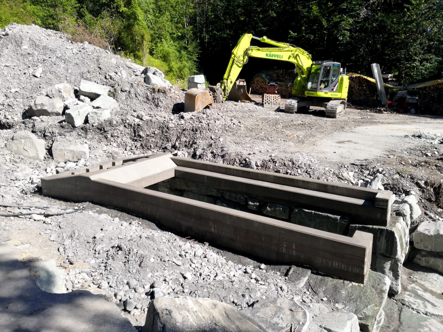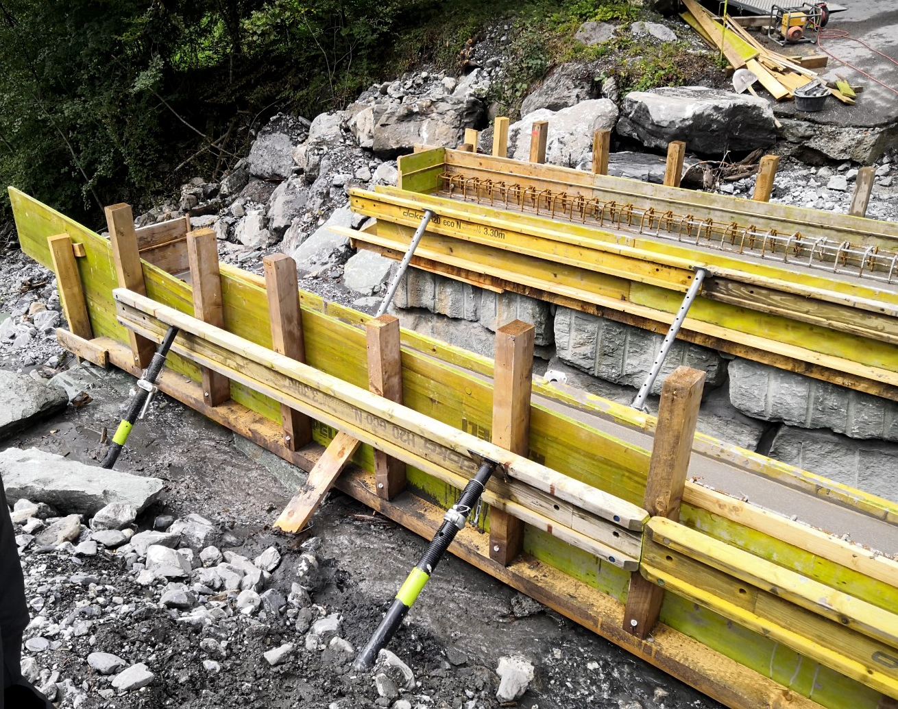 Die Teiler Rüfi entspringt im Spitztobel und bewegt sich durch dieses in Richtung der Dörfer Jenins und Maienfeld. Im Bereich Rüti quert eine Strasse das Gerinne. In diesem Bereich kam es in der Vergangenheit zu Ausbrüchen. Mit der neu geplanten und realisierten Niederwasserfurt wurde das Gelände möglichst optimal genutzt, um solche Ausbrüche zu reduzieren und gleichzeitig eine unterhaltsarme Konstruktion zu erstellen. Bei wenig Wasser kann dieses unter der Konstruktion durchfliessen. Bei Hochwasser mit viel Geschiebetransport oder Murschüben fliesst das Material über die Konstruktion hinweg. Damit werden die Schäden an der Konstruktion auf ein Minimum reduziert.